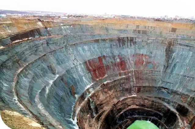 1、俄羅斯米爾內鉆石礦場,是一個的漩渦狀洞穴,是世界很大的露天鉆石礦坑之一。該洞入口直徑達1200米,深約525米,相當于161層樓高。螺旋狀的地洞之深,已使地球內部磁場與地表上空的空氣形成強大氣流。如果質量過輕的小型飛機飛過其上空,都能被這股氣流吸進洞穴。