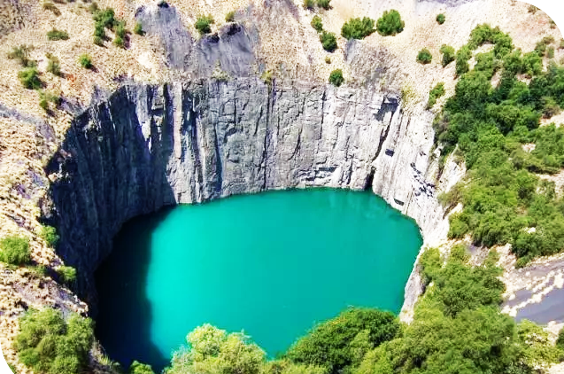 4、金伯利鉆石礦。位于南非開普省,傳說中很大的純手工挖掘的大坑,深1097米,在 1914年被關閉之前生產了超過3噸的鉆石。